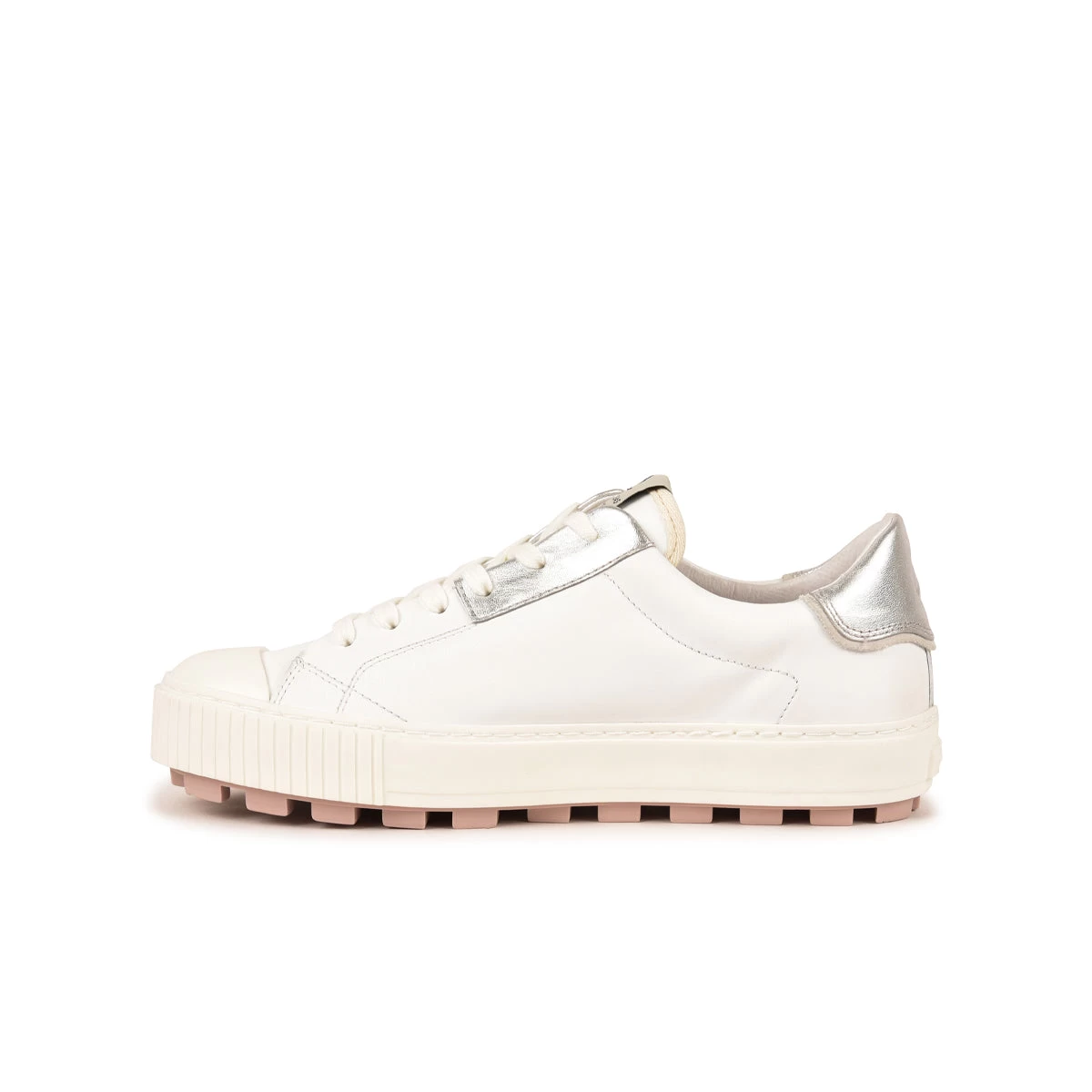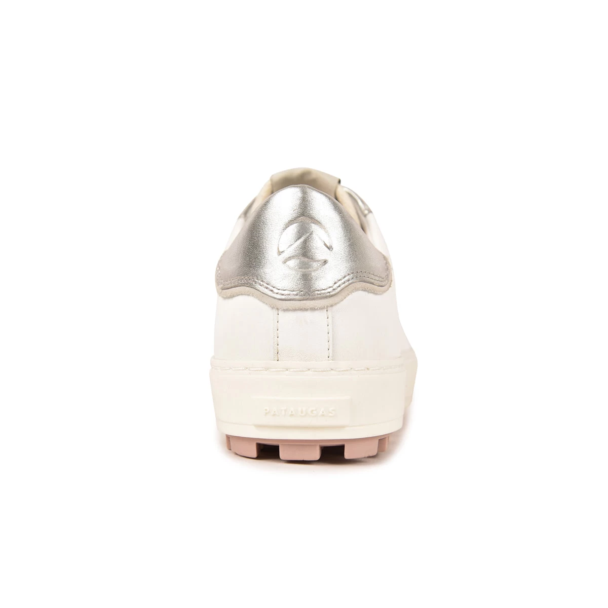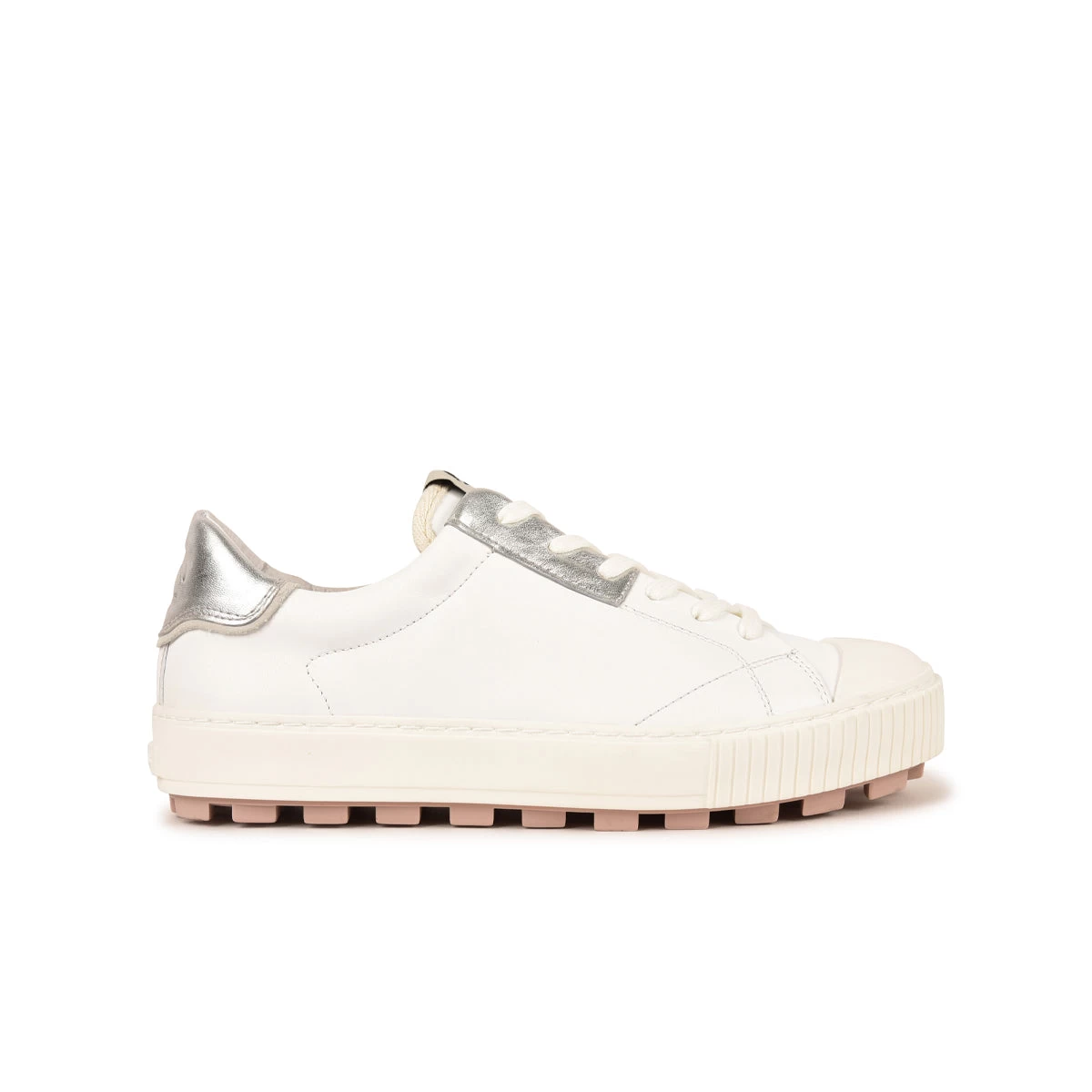 Adoptez la basket femme Aran, nouvelle création de Pataugas. Conçue avec une semelle très originale munie de crampons, cette basket est également confortable. Elle est dotée d’une doublure en cuir parfaite pour ses propriétés antifongiques et anti-odeurs. Sa tige est conçue d’un mix de cuir lisse blanc et argenté très féminin.