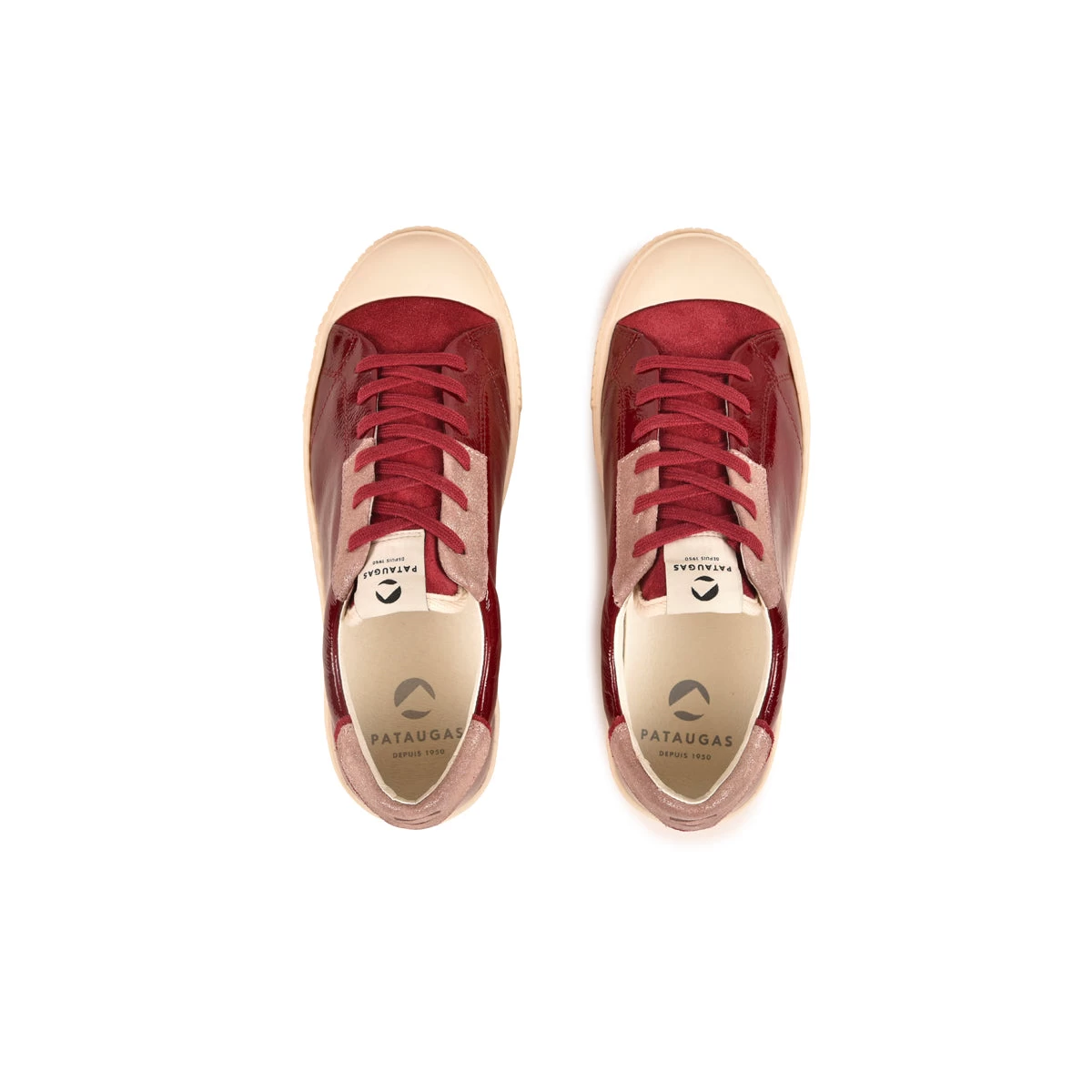 Brillez de mille feux cette saison avec la basket ARAN qui est revisitée cette saison avec une tige en cuir verni bordeaux très girly. Son logo est embossé sur un talon en cuir métallisé. C’est une chaussure pour femme féminine mais surtout très confortable grâce à sa semelle épaisse qui est munie d’un petit talon intérieur afin de donner une très légère cambrure du pied. Sa semelle extérieure est munie de petits crampons antidérapants.