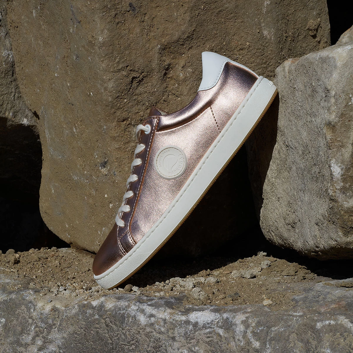 Alliez féminité et éco-responsabilité avec la basket pour femme vegan, Aster. Ce modèle est conçue avec une tige en maïs et a été reteintée en rose métallique pour apporter la touche girly. C’est une chaussure confortable grâce à son talon arrière renforcé et sa semelle moelleuse et confortable.