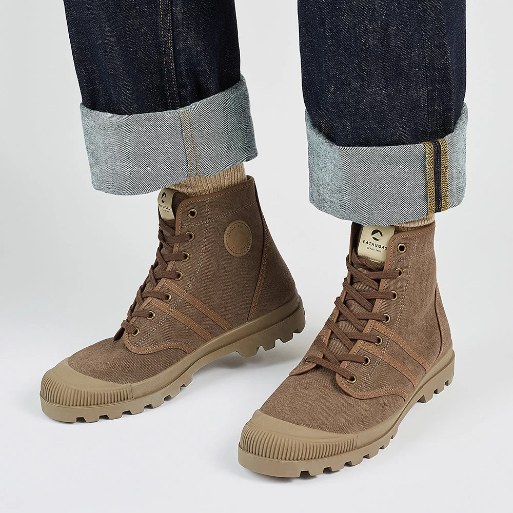 La boots homme Authentique TAN est LE brodequin traditionnel revisité cette saison avec une version tendance et masculine. Cette chaussure pour homme est munie d’une toile couleur tan en coton bio, cette boots est également montée sur une semelle en caoutchouc naturel. Ce procédé permet à la semelle d’être beaucoup plus souple et beaucoup plus légère.