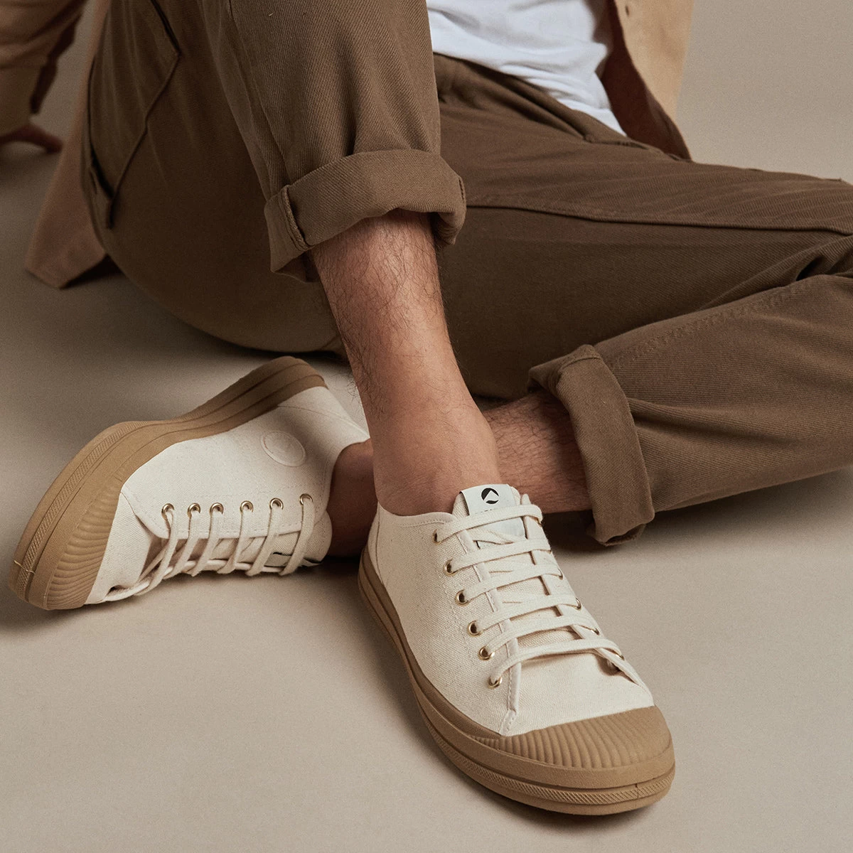 Optez cette saison pour la création ETCHE, basket homme en toile idéale pour allier légèreté et style. Cette chaussure est munie d’une toile résistante couleur écru en coton recyclé et est montée sur une semelle en caoutchouc naturel. Cette matière confère à la semelle plus de légèreté et plus de souplesse.