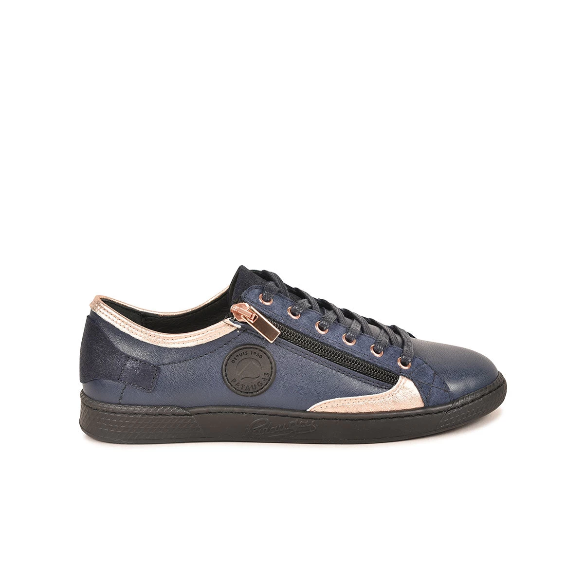 Découvrez la chaussure en cuir pour femme idéale pour conjuguer vos envies de marche avec votre féminité. La basket pour femme JESTER, est munie d’une fermeture en cuir très pratique, d’un mix de cuir bleu marine et rose très élégants et d’une semelle confortable. Cette chaussure a été conçue dans nos ateliers au Portugal.