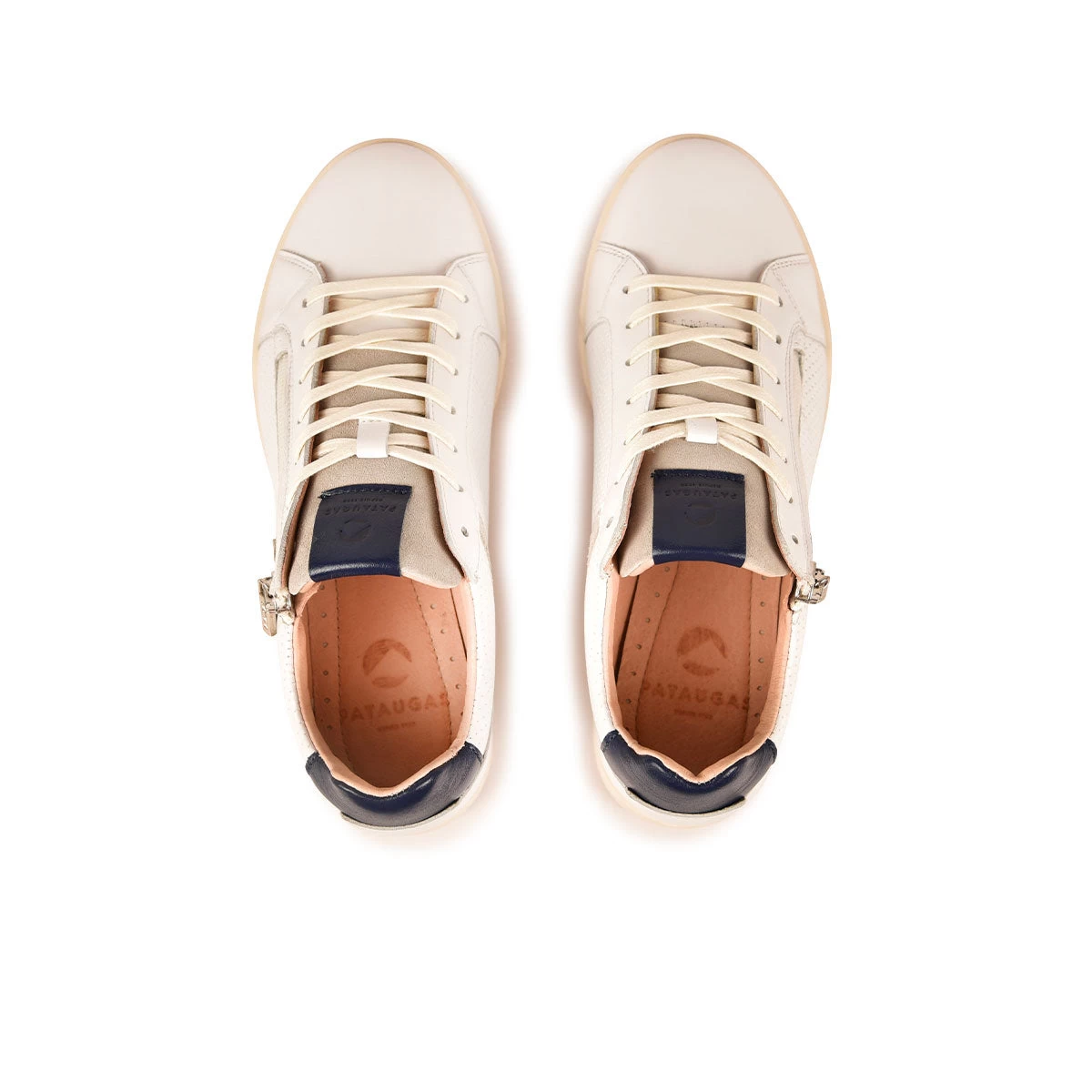 Découvrez la nouveauté de la saison, la version Low de notre Palme! Celle-ci emprunte les codes du sport ambiance tennis avec son cuir blanc légèrement perforé et ses accents couleurs. Véritable référence en terme de confort grâce à sa semelle en injecté ultra-souple, cette chaussure vous apportera une grande flexibilité dans vos mouvements. Son mix de cuirs est élégant et sa fermeture éclair est très pratique pour faciliter le chaussant.